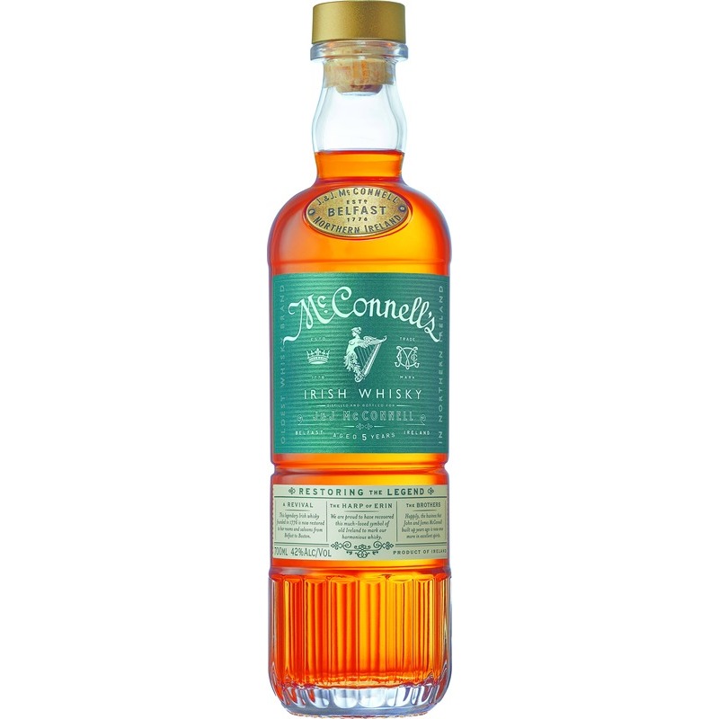 Der 5 Jahre gereifte McConnell's ist ein charakteristischer, feiner Blend aus irischen Malz- und Getreidewhiskies, die sanft in ausgewählten Ex-Bourbon-Fässern geruht haben. Diese Reifung verleiht dem Whisky eine delikate, subtile Vanillesüsse, schöne Obertöne von reifen Früchten, Karamell und Pfeffergewürz. Im Abgang entwickelt sich ein tiefes Eichenholzaroma mit einem leichten Duft nach Holzkohle.